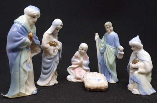 Dicksons Gifts - 6 Piece Nativity: Joseph, Mary, Baby Jesus in Manger, and 3 Wise Men - Tinted Porcelain w/Gold Accents - 3.25" High
