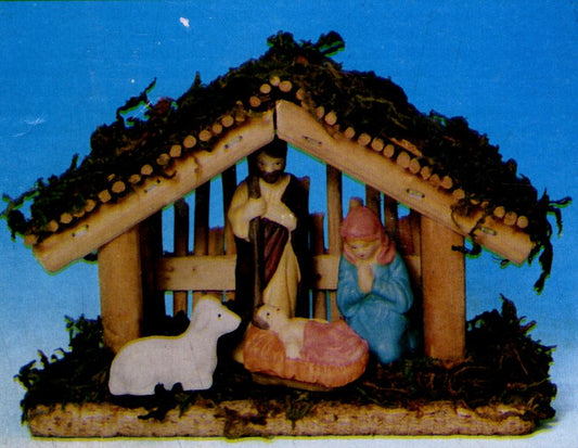 Oriental Trading Co. Inc. - 4 Piece Nativity Set with Stable: Joseph, Mary, Baby Jesus in Manger, and Sheep - Ceramic Set with Wood Stable