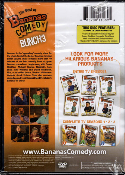 Bananas is the "appeeling" comedy show for the whole family! The Best of Bananas Comedy: Bunch Volume Three contains more than 40 minutes of the best comedy from six great Bananas comedians. Laugh along with Daren Streblow, Michael Rayner, Nazareth, Sara Shea, Mike Williams, and David Pendleton. Plus, as an added bonus, The Best of Bananas Comedy: Bunch Volume Three also contains comedian and ventriloquist David Pendleton's Bananas TV show!