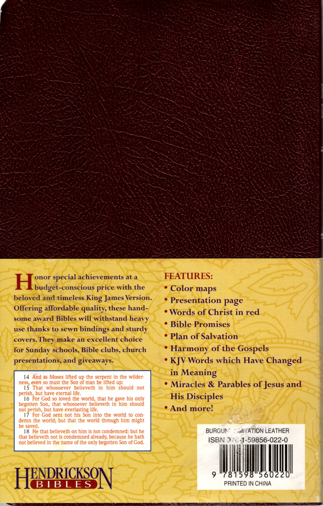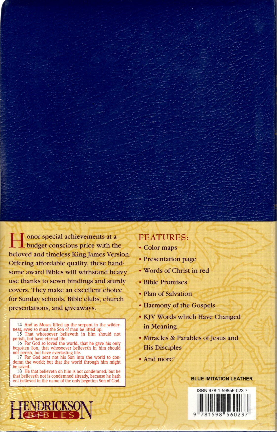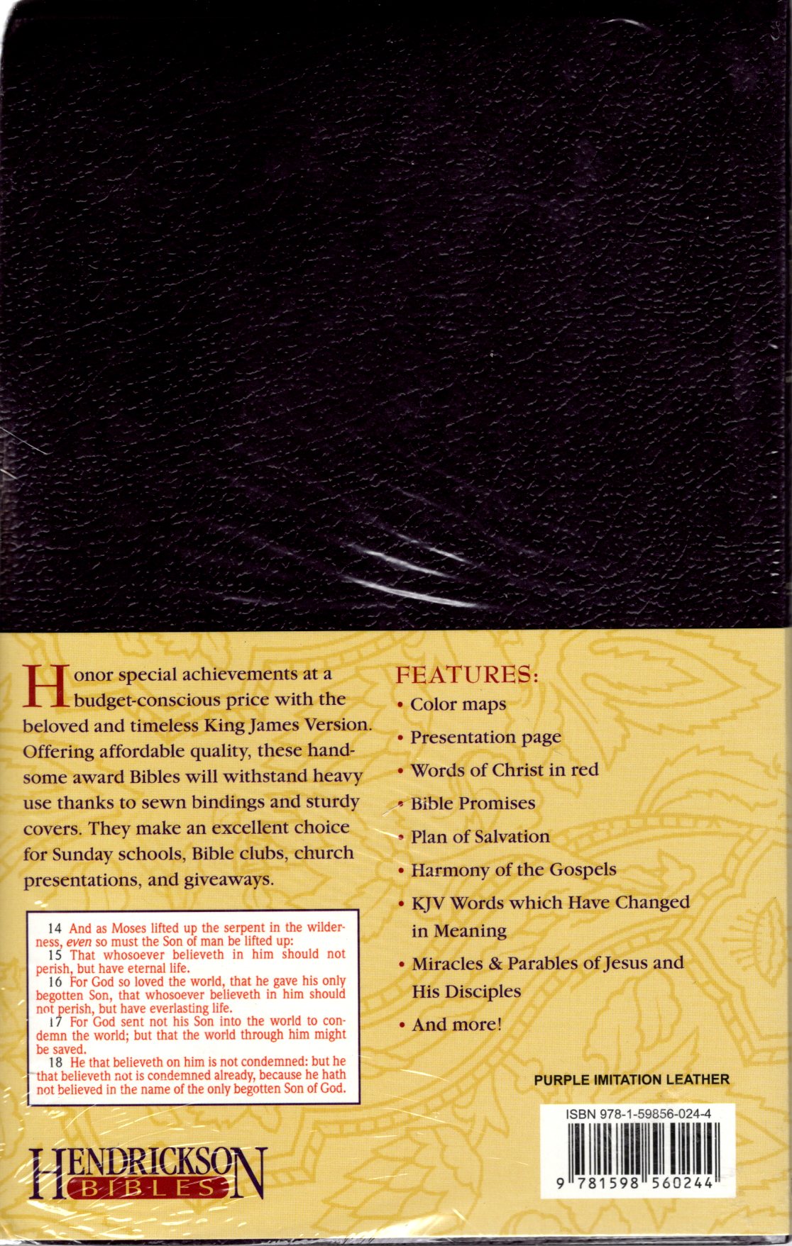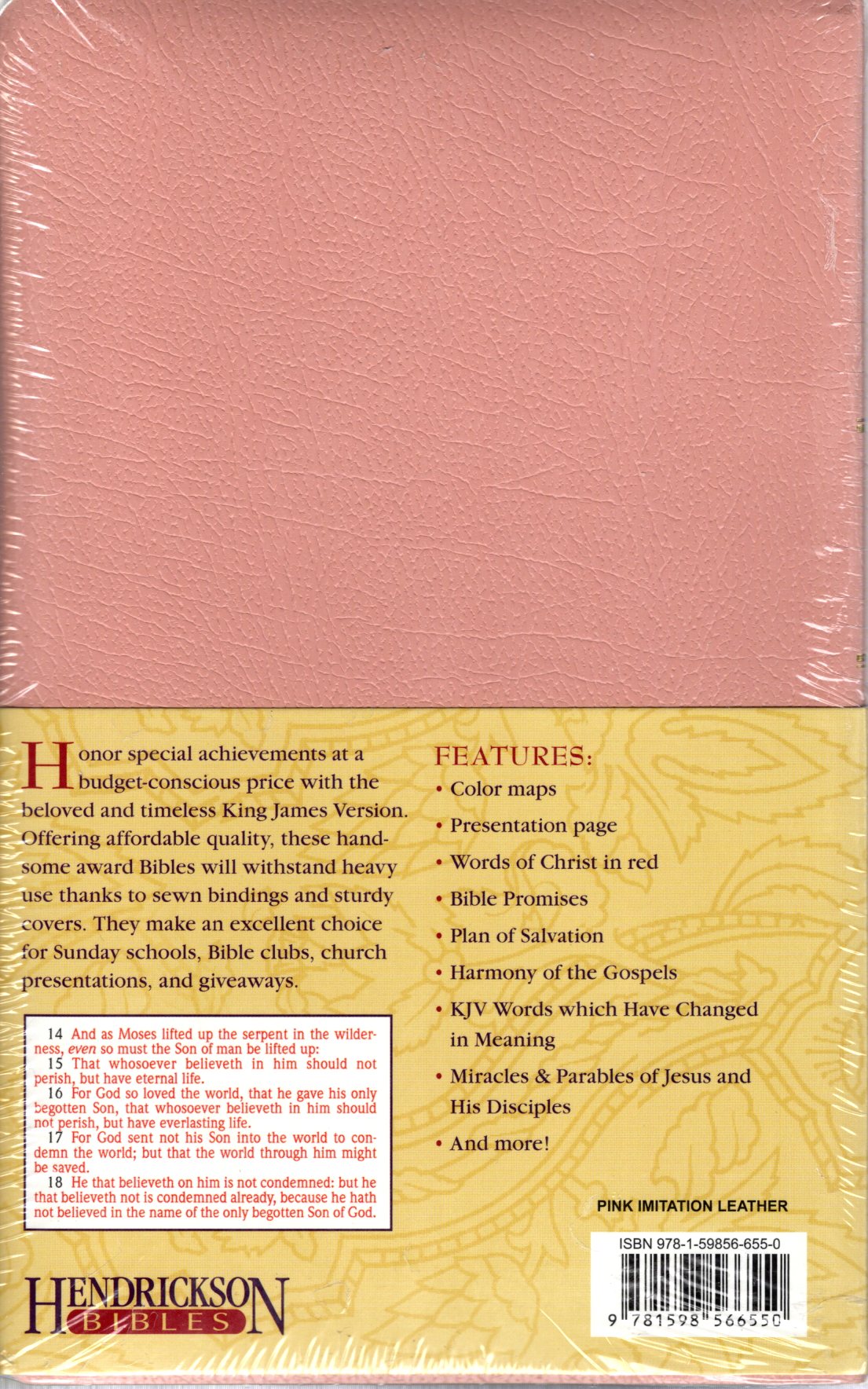 The beloved and timeless King James Version is made available in an affordable edition for Sunday schools, Bible clubs, church presentations, and giveaways. Offering affordable quality, these handsome award Bibles will withstand heavy use thanks to better quality paper and supple but sturdy cover material.