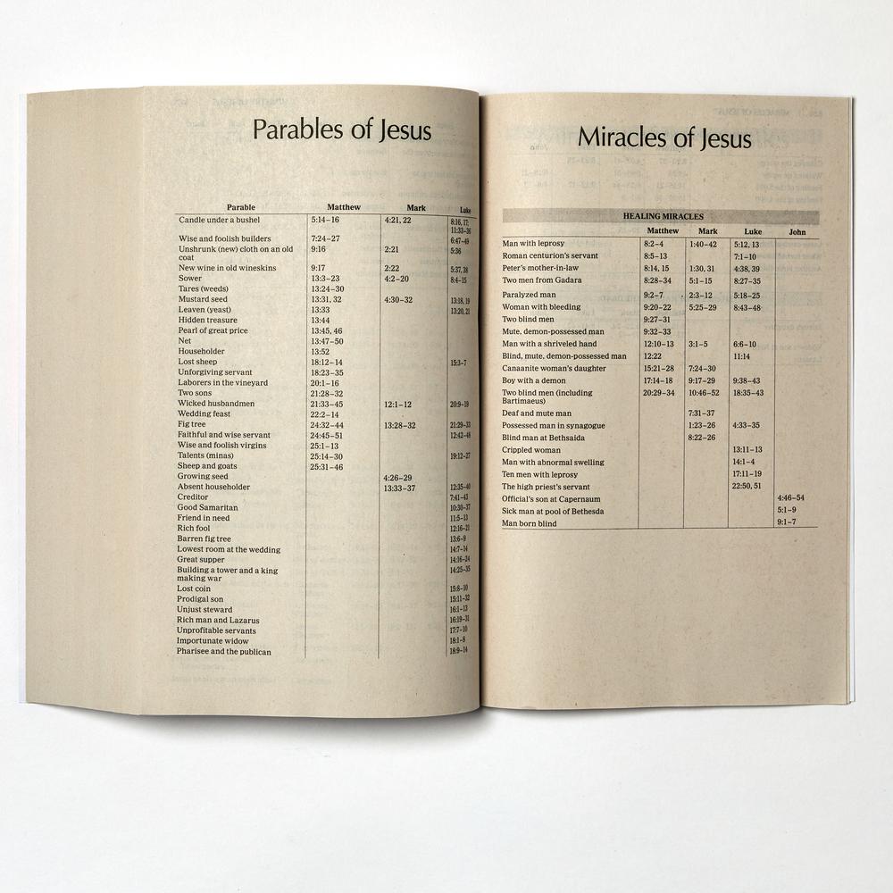 - Reference lists for the Ministry, Miracles, and Parables of Jesus