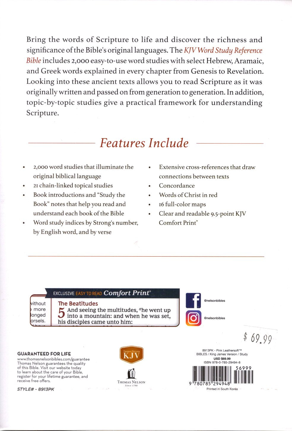 The KJV Word Study Reference Bible balances deep study of the biblical languages with clear application to help transform the way you live. Uncover a wealth of meaning in Scripture with more than 2000 Greek and Hebrew word studies.
