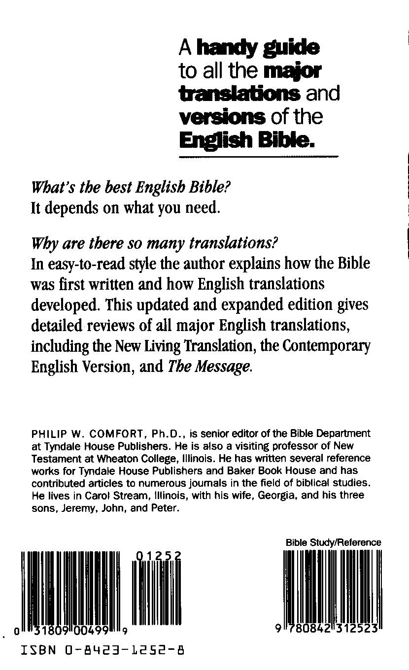 The Complete Guide to Bible Versions answers the many questions about the different translations of the Bible. In an easy-to-read style, the author, Philip W. Comfort, Ph.D., explains how the Bible was first written and how English translations developed. He also gives a detailed explanation of all the English translations, with suggestions for using each of the several excellent versions now available.