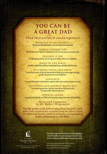 The Dad's Bible is filled with challenging and helpful information designed to encourage and uplift fathers whose lives will be a priceless legacy for generations to come.