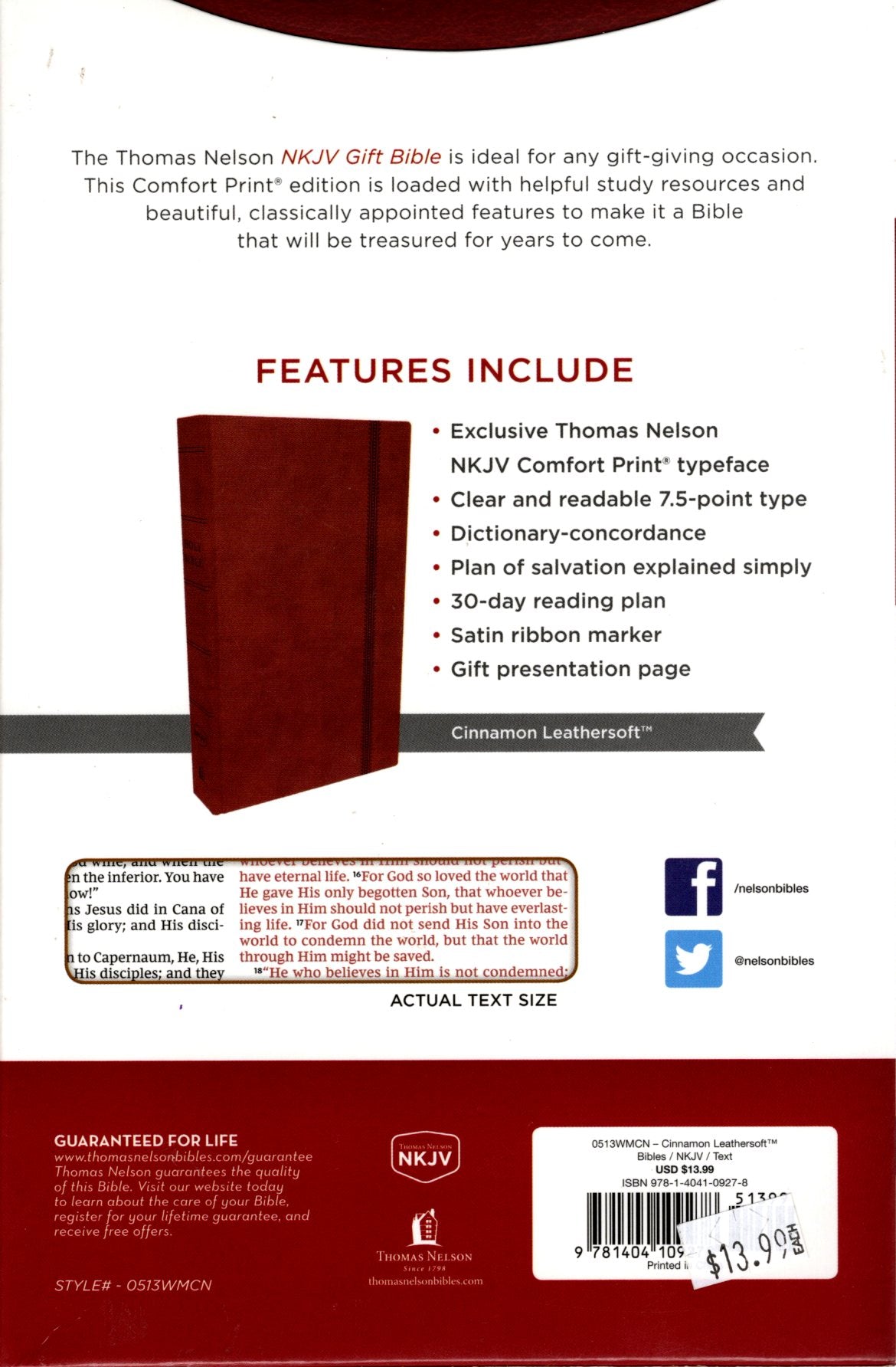 Thomas Nelson NKJV® Gift Bible - Leathersoft™ (Cinnamon)