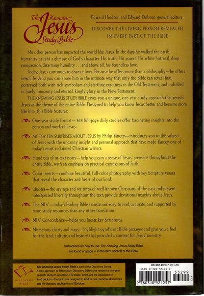 Zondervan NIV® The Knowing Jesus Study Bible: A One-Year Study of Jesus in Every Book of the Bible - Hardcover w/Dust Jacket